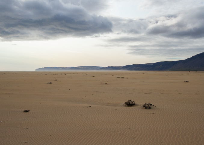 Uden de store forhåbninger gik vi afsted. Henover groft sand og nogle steder grødet sne.
